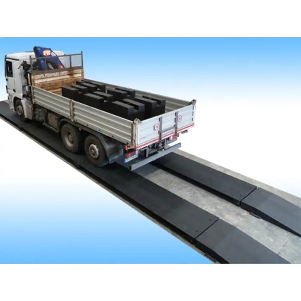 • Double lane weighbridges made of painted steel and consisting of modules (with embossed sheet metal top) 1m wide and 4.5m long.