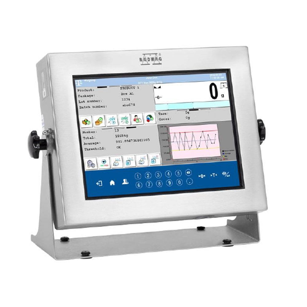 The HY10 PUE terminal is a construction component of load cell scales, dosing devices, formula scales and sets designed to perform operations such as labeling and counting. The HY10 PUE terminal is housed in a stainless steel enclosure with IP68 / 69. The terminal features a 10.1” touchscreen display and numerous ports that allow the connection of various devices: 2 weighing platforms, barcode reader , printer, label maker, transponder card reader and PC equipment (mouse, computer, keyboard, USB stick).