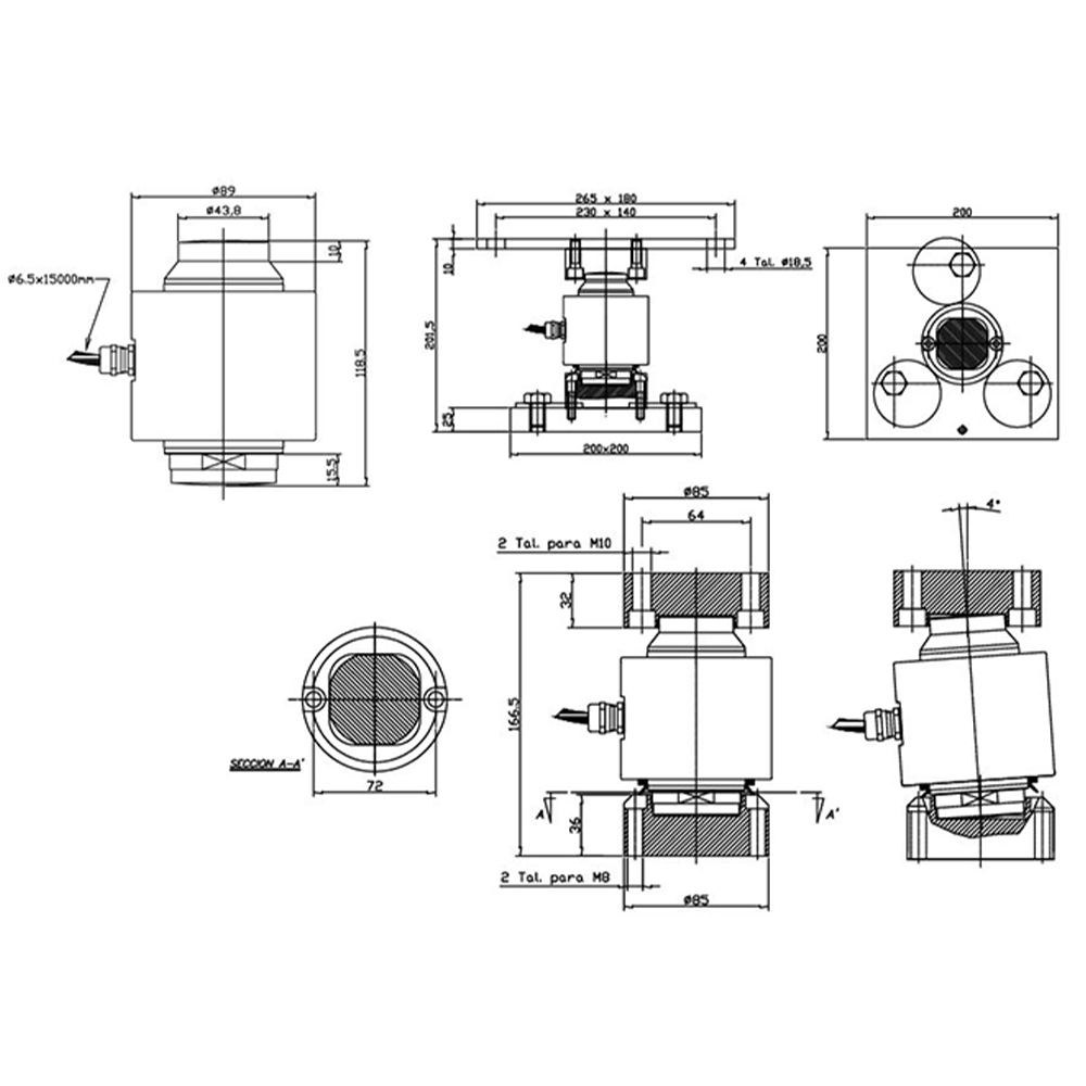 Capacità: 10 – 15 – 20 - 25 – 30 – 35 – 40 - 50 t • Cella di carico a compressione • Fino a 6000 divisioni OIML-R60 • Totalmente in acciaio inox • Totalmente saldata. Protezione interna IP-69K (EN
